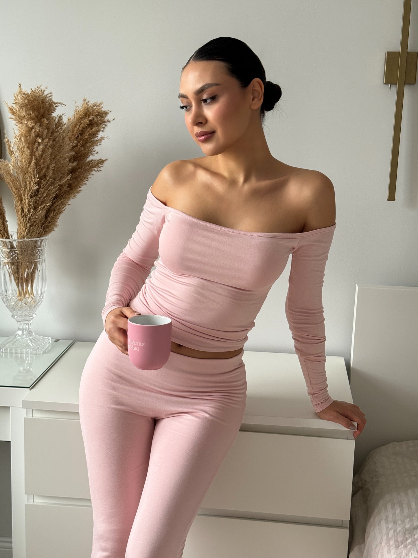IKARA - AÇIK OMUZ UZUN KOL T-SHIRT - COTTON CANDY