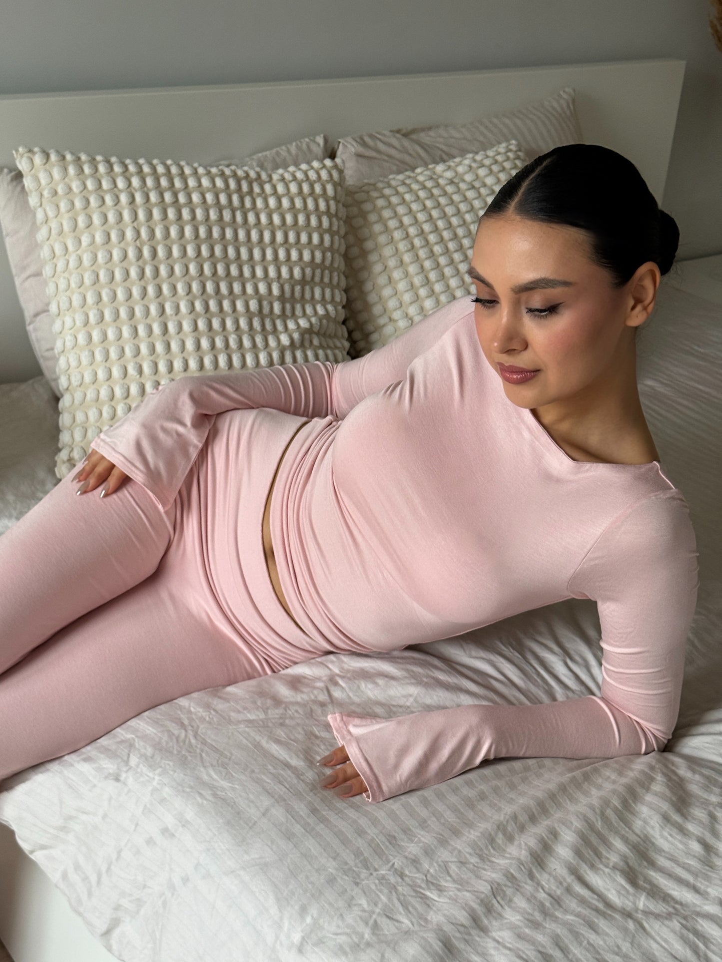 HELEN - KARE YAKA UZUN KOL T-SHIRT - COTTON CANDY