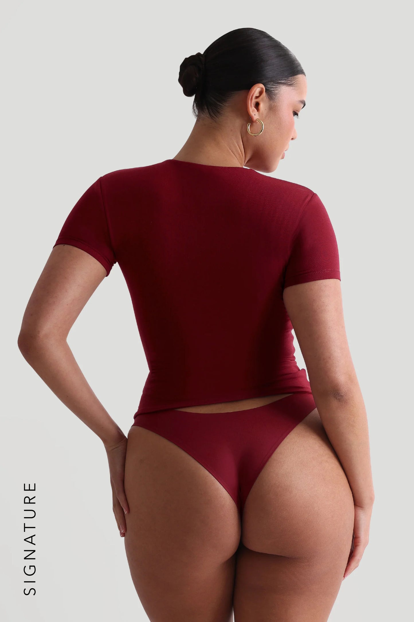 HOFLICH - KAYIK YAKA FLARE KOL T-SHIRT - RED PLUM