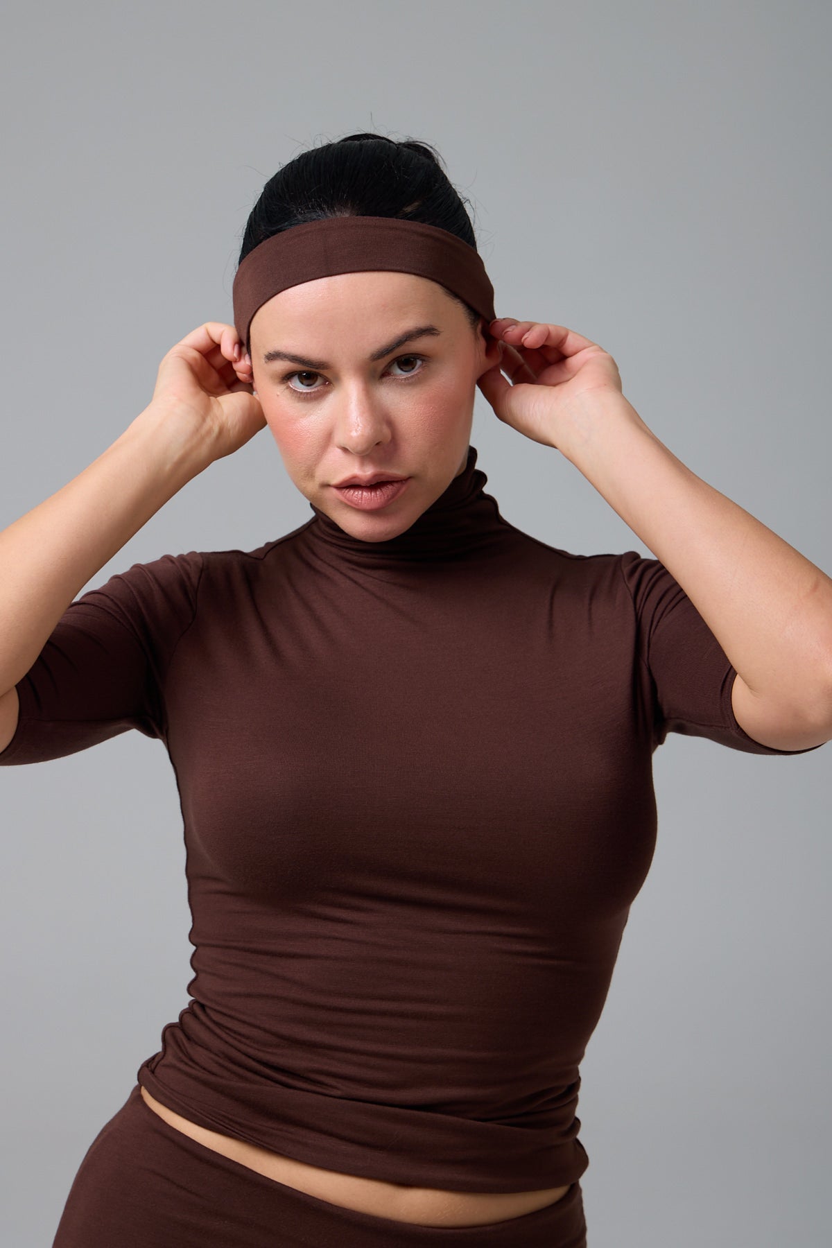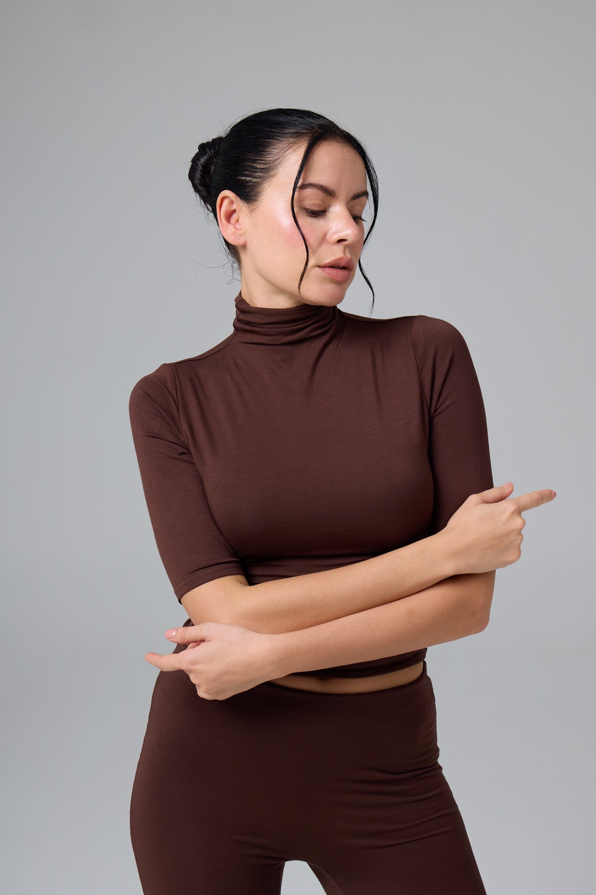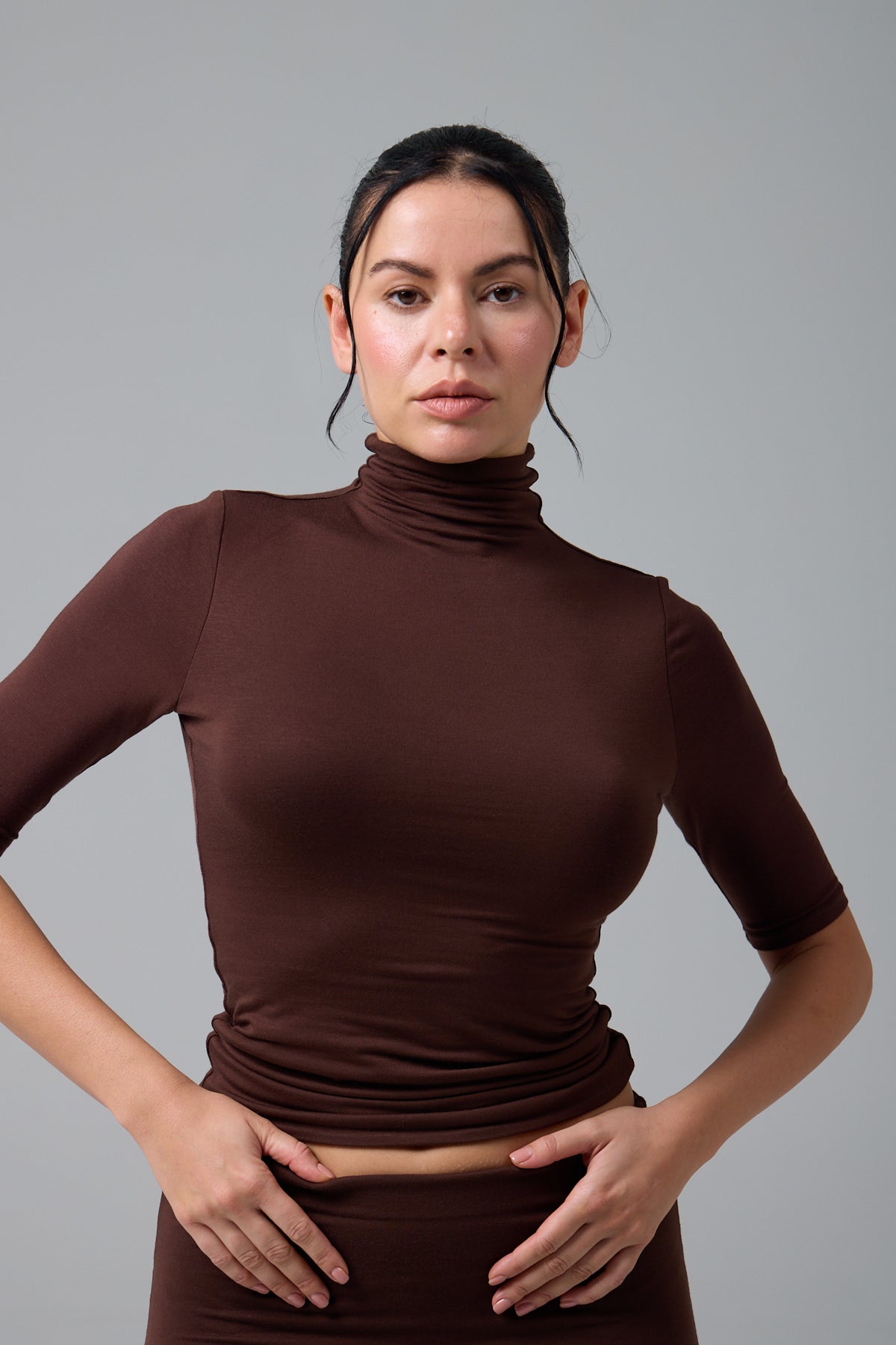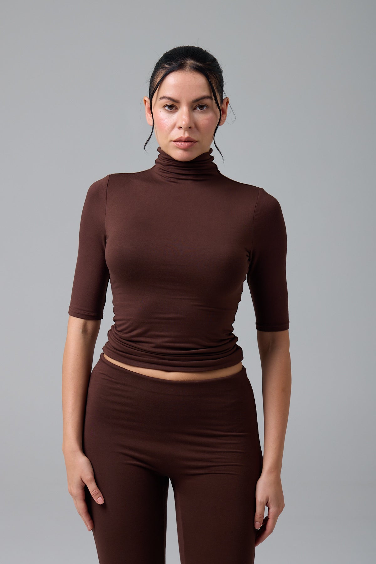 MİSS - BALIKÇI YAKA YARIM KOL T-SHIRT - CHOCOLATE