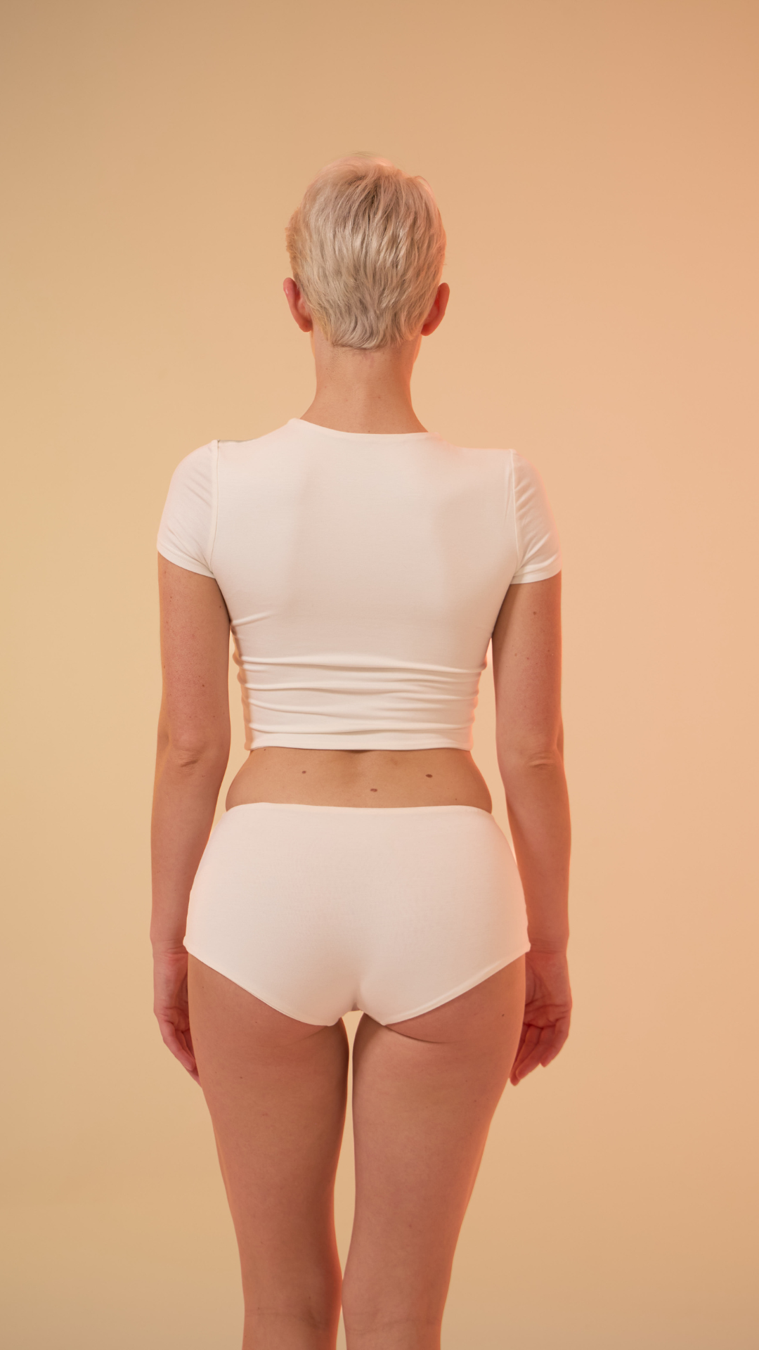 OZY - YUVARLAK YAKA KAP KOL CROP T-SHIRT - CREAM